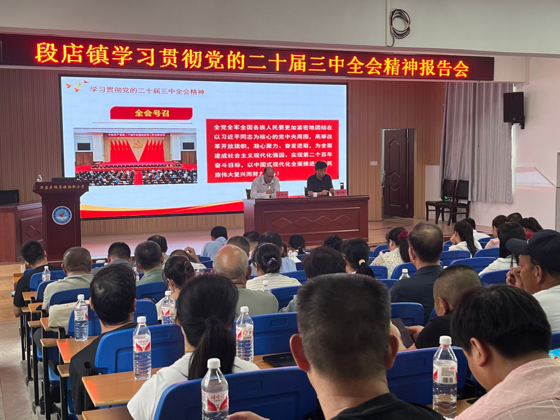 喻学林在段店镇为《深入学习三中全会精神,奋力推进中国式现代化伟业》作专题辅导报告。他紧扣全会召开的时代背景、《决定》的基本内容和创新观点,对全会精神进行了深度解读,引导大家准确领会把握全会的核心要义和实践要求。