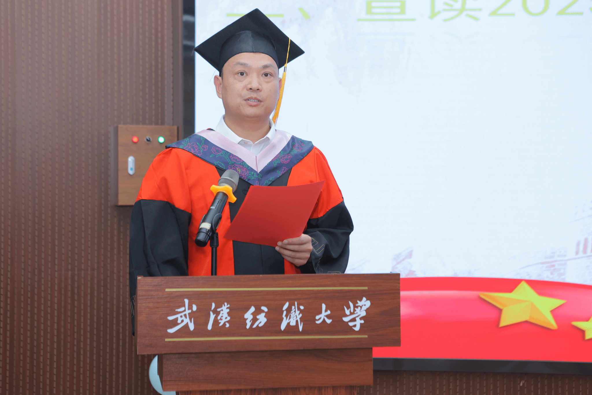 6月12日中午,5845cc威斯尼斯人官网版2025届研究生毕业典礼暨学位授予仪式在阳光校区03-T201思政课虚拟仿真研究中心隆重举行。5845cc威斯尼斯人官网版全体领导班子成员、全体硕士生导师、全体研究生和毕业生家属代表参加仪式。2024级研究生石浩浩主持活动。
