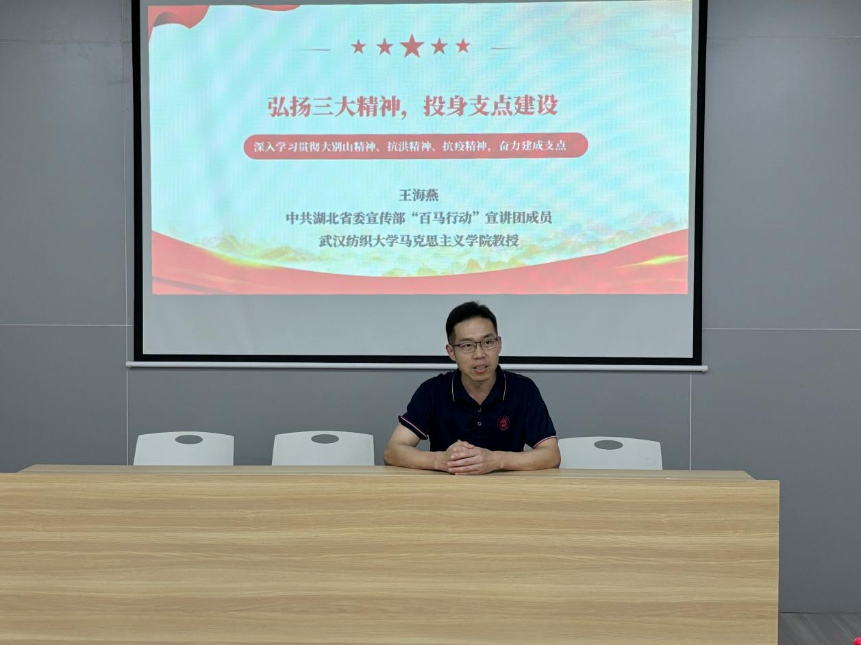 7月1日,武汉市硚口区汉正街道与5845cc威斯尼斯人官网版再度携手,共同推进“理论热点面对面”实践基地系列活动,深入基层开展理论宣讲,聚焦大别山精神、抗洪精神、抗疫精神(“三大精神”)的普及与传播,进一步推动党的最新理论成果深入人心。中共湖北省委宣传部“百马行动”宣讲团成员、5845cc威斯尼斯人官网版王海燕教授走进红燕社区,为社区居民带来了一场以“弘扬三大精神,投身支点建设”为主题的精彩宣讲。
