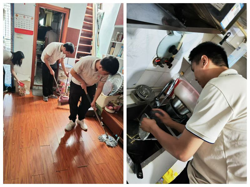 实践团一行在社区工作人员的带领下,深入居民家中,展开了一场全面而细致的清洁卫生行动。他们分工明确,有的手持扫帚清扫地面,有的则用抹布细心擦拭家具,更有几位同学专注清洗厨具灶台,每一个角落都不放过,力求干净整洁。