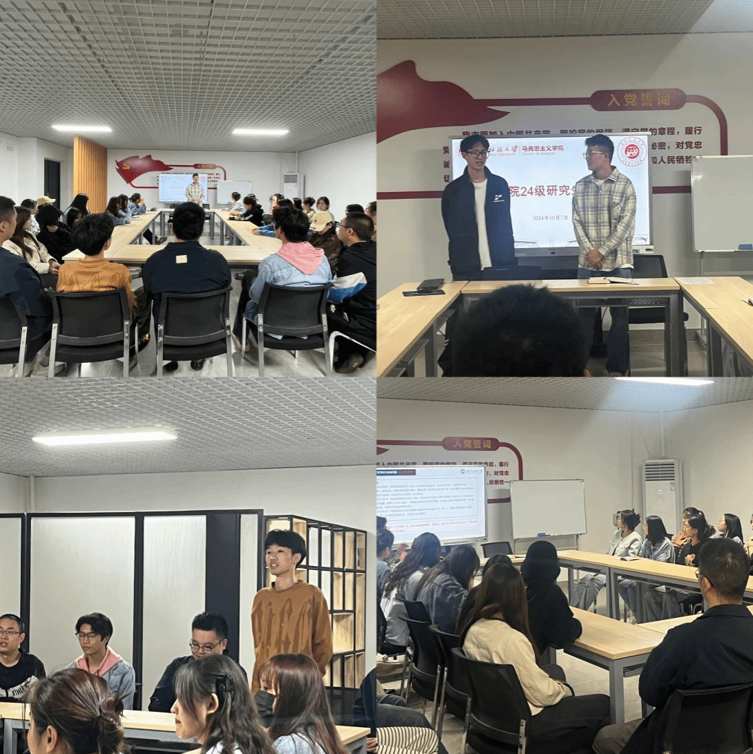 为深入了解2024级研究生新学期适应状况,加强师生沟通,10月7日晚,5845cc威斯尼斯人官网版2024级研究生适应性教育主题班会在马院“一站式”学生社区召开。学院党委副书记徐喆、2024级研究生辅导员谢姚君楠及全体2024级研究生参加班会,2024级班长朱明明主持班会。