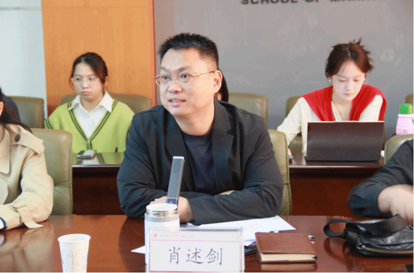 图为肖述剑(右一)为一等奖获得者颁奖