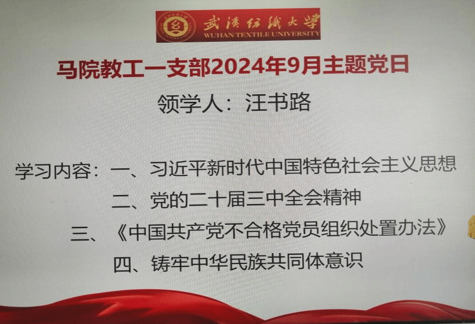 9月26日下午,5845cc威斯尼斯人官网版教工第一党支部举行9月份主题党日活动会议,会议由支部书记王海燕同志主持。