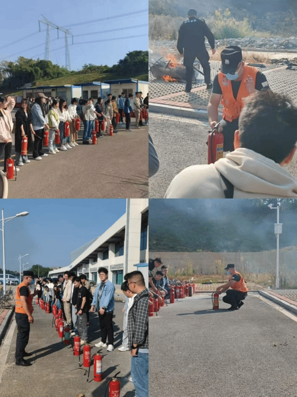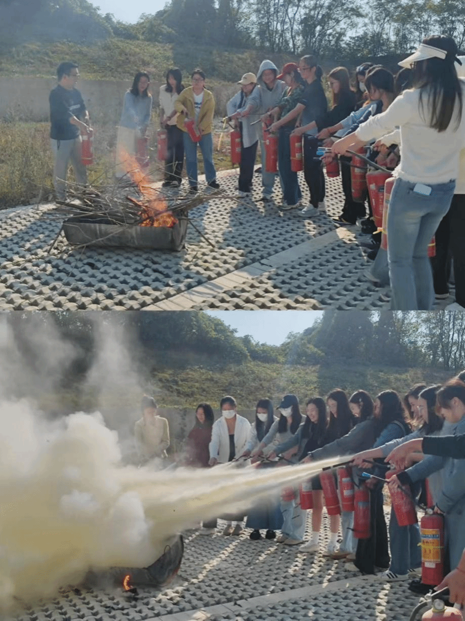 随后,在安保人员的带领下,进行了灭火实践演练,操作灭火器进行灭火演练。活动中,师生们积极参与,在紧张有序的氛围中,大家学习了如何正确使用灭火器,并且了解了不同类型的火灾应使用何种灭火器。通过这次演练,现场师生不仅掌握了灭火的基本技能,还增强了面对火灾时的应急反应能力。
